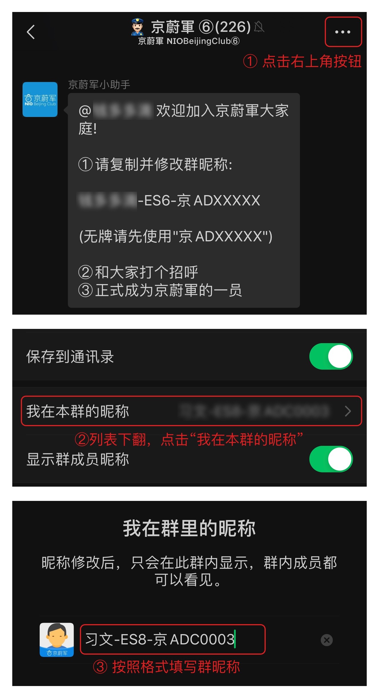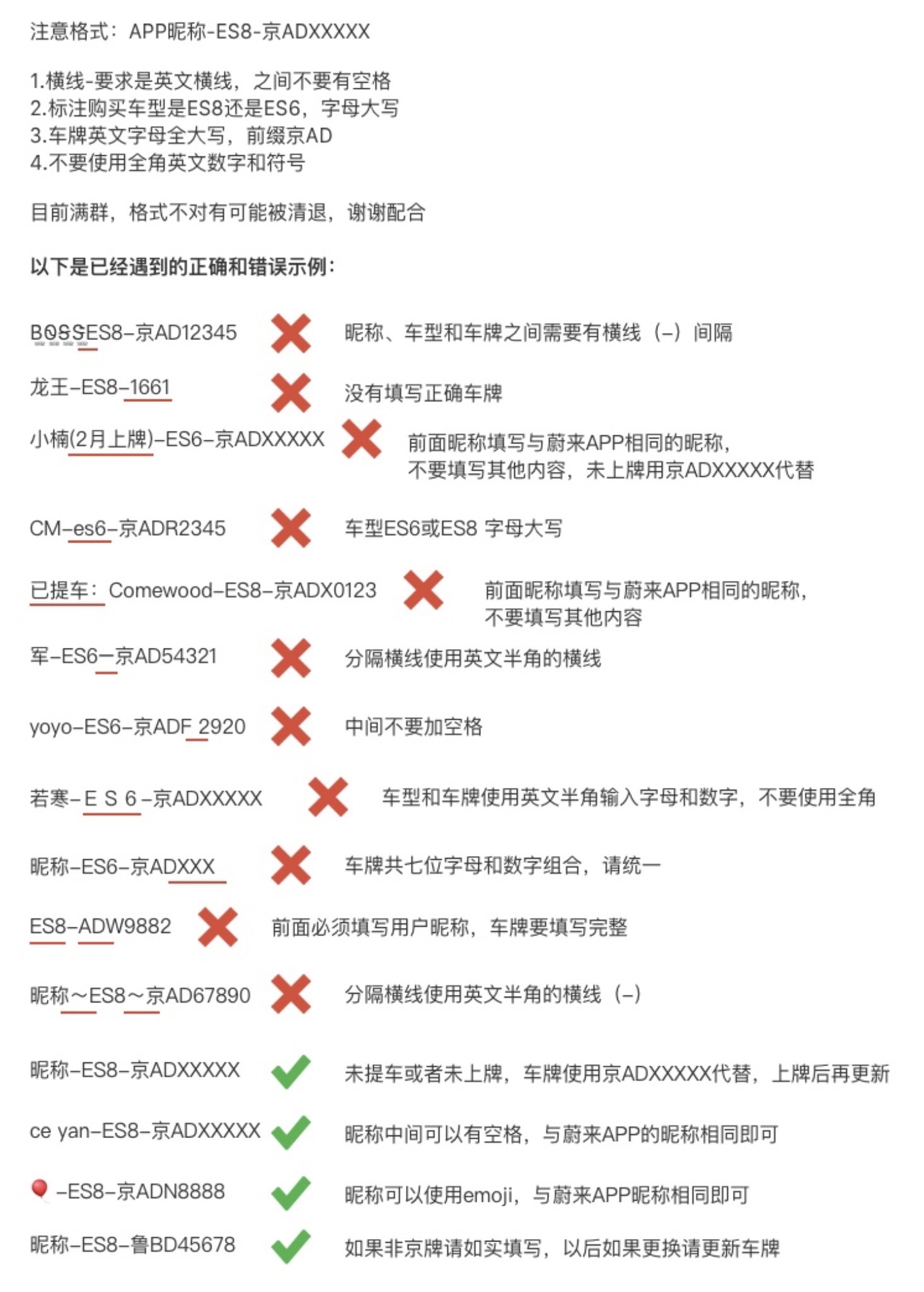 蔚来昵称:请与蔚来APP中使用的昵称保持一致